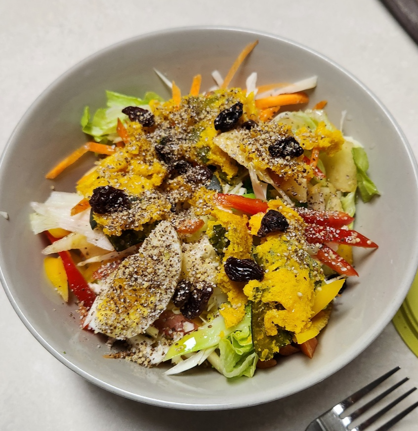 또 하나는 들깨가루입니다. 들깨를 구입해서 믹서기에 살짝만 갈아서 샐러드 위에 한 숟갈 뿌립니다. 이것도 샐러드를 맛나게 하고 몸에도 좋습니다. 매번 갈 수는 없으니 어느 정도 양으로 살짝 갈아서 냉동 보관하고 조금씩 꺼내 씁니다.